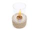 Caminetto dal design cilindrico con base decorativa in pietra, interamente realizzato in acciaio inox e vetro temperato. Ha un serbatoio da 0,15L.
